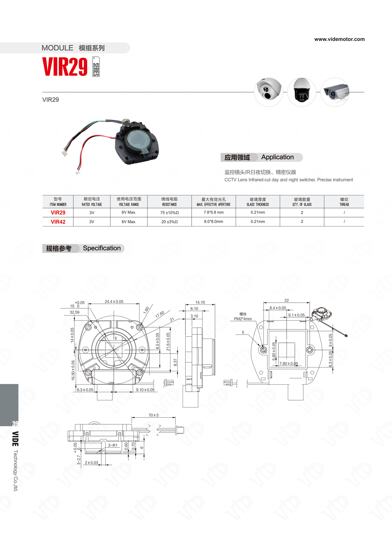 應用領域:監(jiān)控鏡頭IR日夜切換、精密儀器